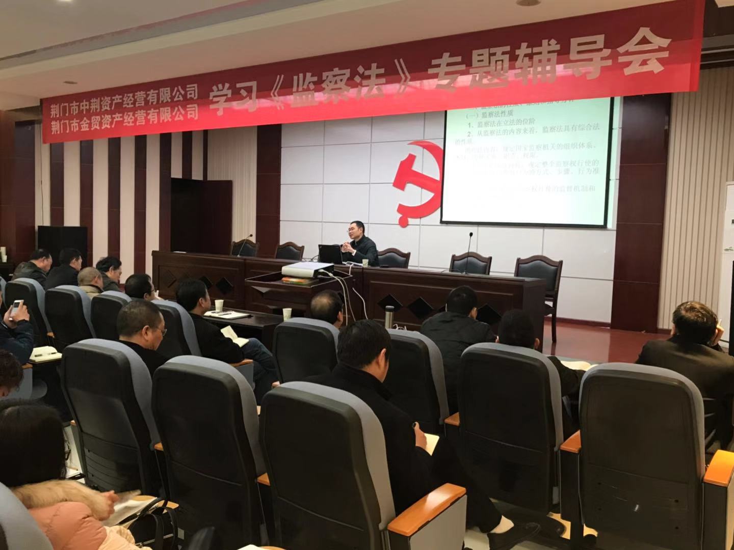2018年12月5日上午,市中荊資產(chǎn)經(jīng)營有限公司、市金貿(mào)資產(chǎn)經(jīng)營有限公司在五樓會(huì)議室聯(lián)合舉辦了《中華人民共和國監(jiān)察法》專題輔導(dǎo)會(huì),中荊投資控股集團(tuán)有限公司領(lǐng)導(dǎo)及系統(tǒng)內(nèi)全體員工參加了輔導(dǎo)。會(huì)議由公司副總經(jīng)理梁世希同志主持,邀請了荊門黨校法學(xué)教授吳衛(wèi)東授課。