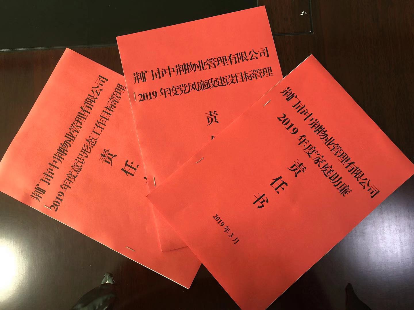 2019年3月14日,市中荊物業(yè)管理有限公司黨總支與公司各黨支部、部室、領(lǐng)導成員簽訂了《2019年度黨風廉政建設(shè)目標管理責任書》、《2019年度意識形態(tài)責任書》、《2019年度家庭助廉責任書》,各類責任書的簽訂,進一步明確了各項工作中的職責,把責任扛在肩上。為我公司2019年各類工作任務(wù)的落實起到了保障作用。