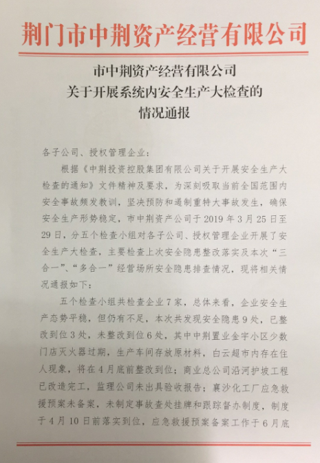 上一篇:中荊置業(yè)公司狠抓三供一業(yè)施工安全 | 下一篇:荊門市中荊資產(chǎn)經(jīng)營有限公司 取得安全生產(chǎn)事故應(yīng)急預案備案證